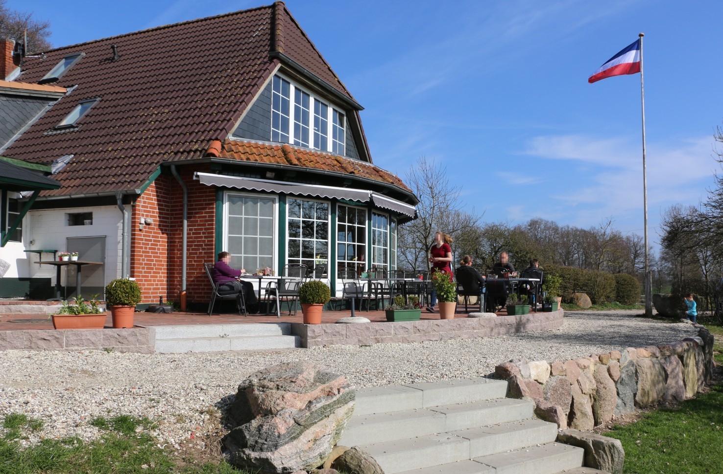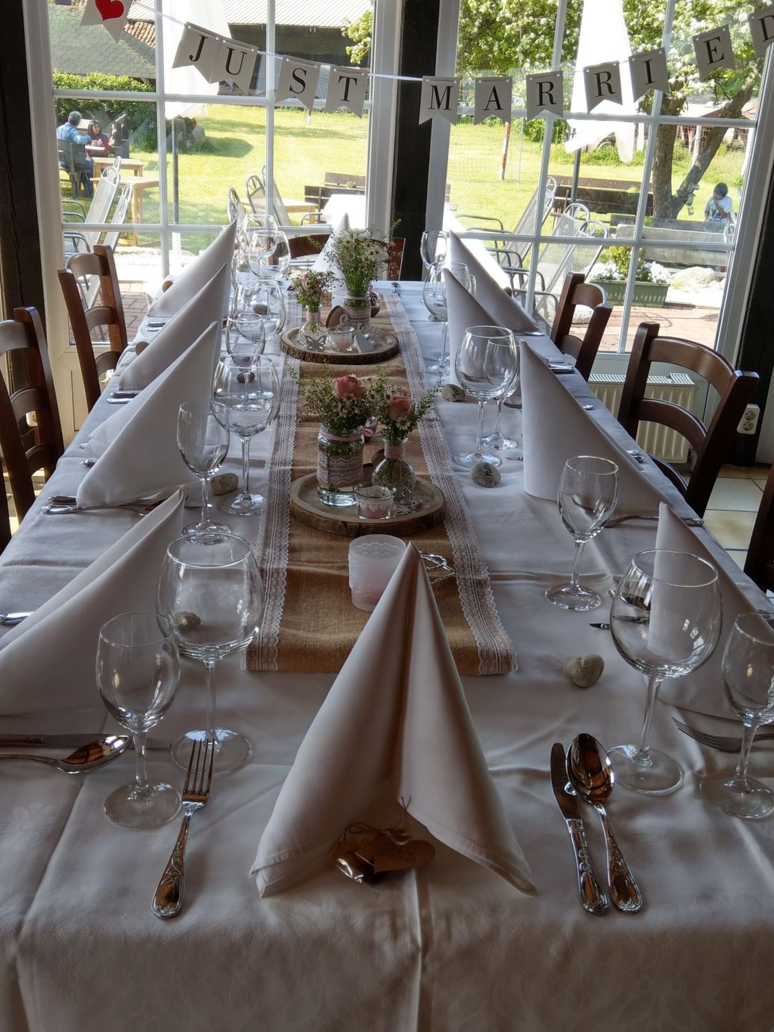 Wenn Ihr bei Sonnenschein draußen Feiern möchtet, steht Euch unsere großzügige Terrasse mit angrenzender Rasenfläche zur Verfügung.